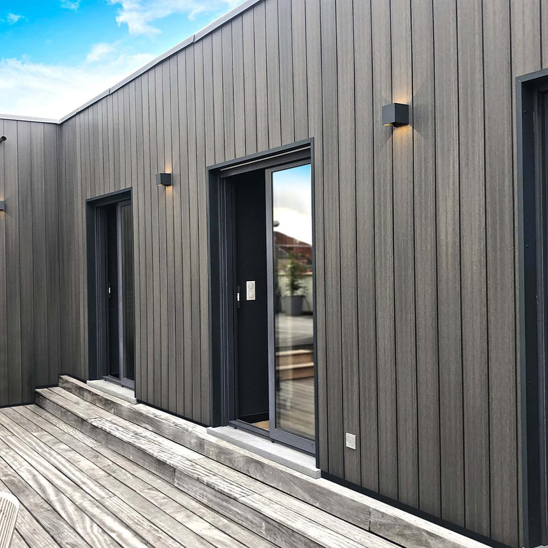Фасадные панели Greendecks WEO® Essential представлены в четырёх оттенках, имитирующих структуру и цвет необработанного или состаренного дерева. Каждый цвет — многотональный, с естественными пигментами для максимально реалистичного эффекта.